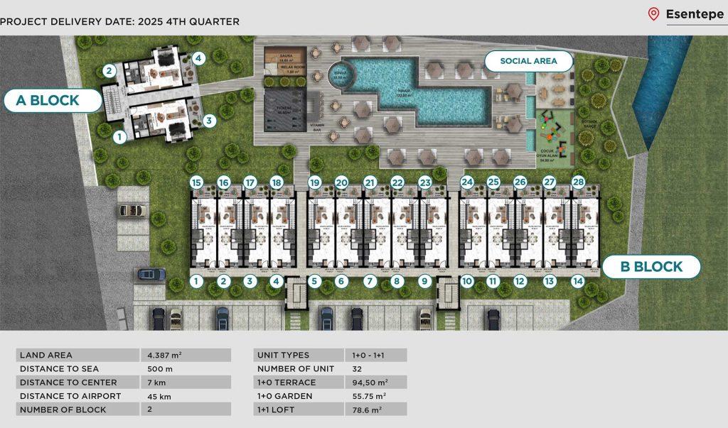 Projekt Aqua Sea Side se nachází v malebné oblasti, v pěší vzdálenosti od moře, ale daleko od hluku a ruchu města.